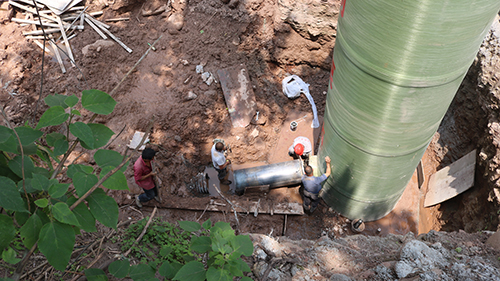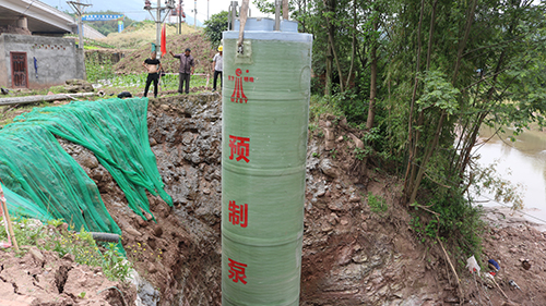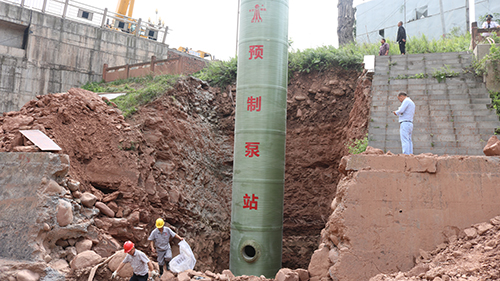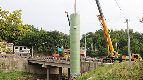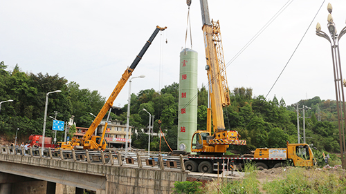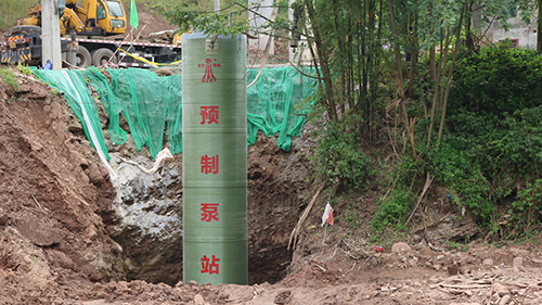 我司大型預制泵站應用安裝于雅安對巖鎮(zhèn)雨污水收集提升工程,安裝現場!