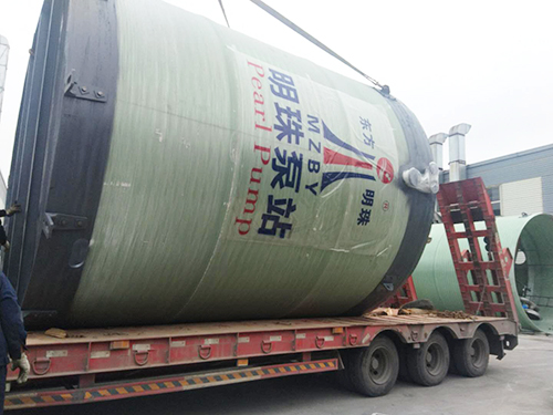 明珠泵業(yè)直徑3800mm玻璃鋼一體化預(yù)制泵站裝車發(fā)貨應(yīng)用遂寧餐廚環(huán)保建設(shè)!