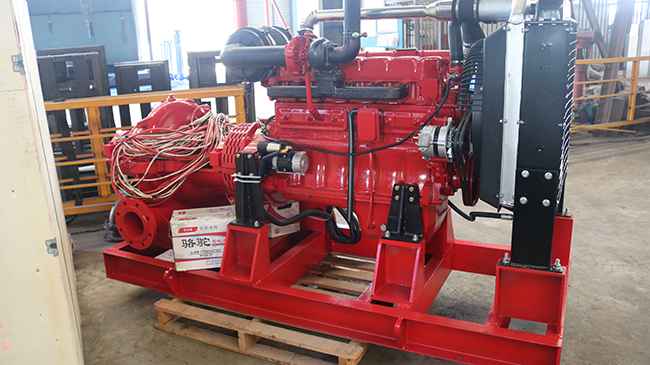 我司柴油機中開消防泵組生產(chǎn)檢測完成應用噴淋滅火建設