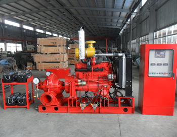 設(shè)備由X6135、12V135、4102、6102等系列柴油機(jī)為動(dòng)力,柴油機(jī)(可配離合器)通過(guò)高彈性聯(lián)軸器與消防泵聯(lián)接組合成消防泵組,機(jī)組外還包括柴油箱、散熱水箱、風(fēng)扇、控制屏(自動(dòng)機(jī)組用)等部件。