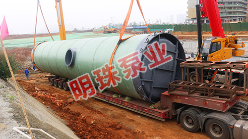 我司3.8米*19.8米大型玻璃鋼一體化預(yù)制泵站安裝